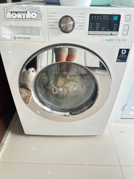Área de serviço com móveis planejados e máquina lava e seca