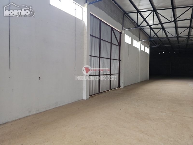 Barracão com portas amplas, piso de concreto.