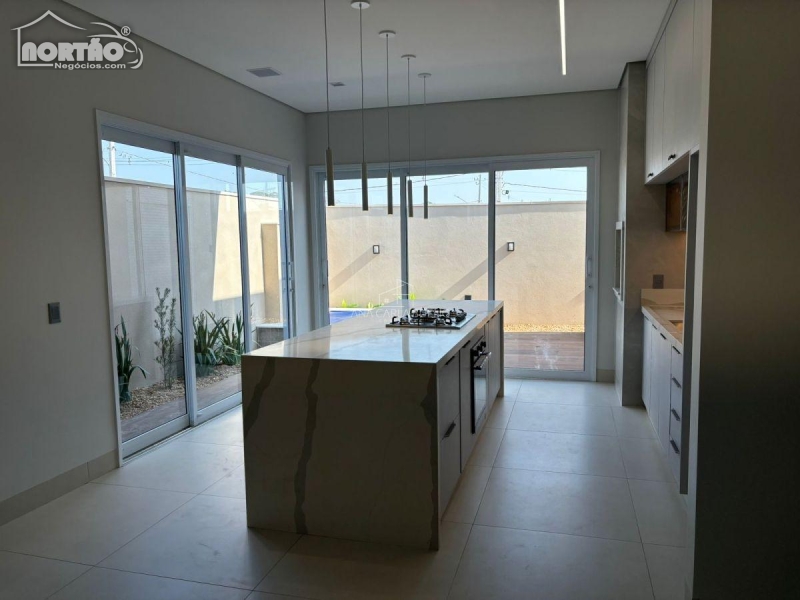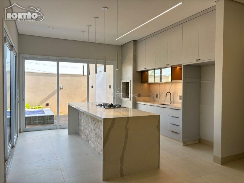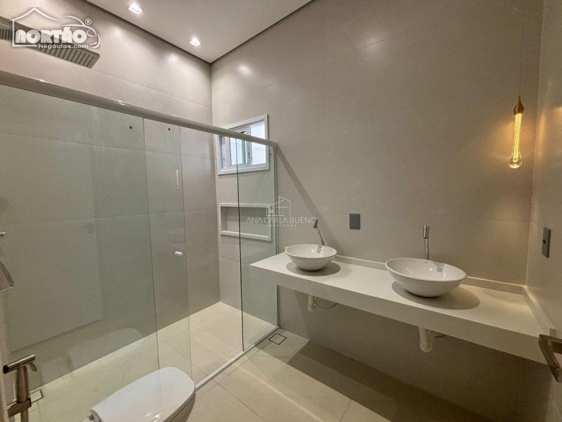 Laje, porcelanato, esquadrias de alumínio, forro gesso, iluminação LED, fechadura eletrônica, porta automatizada na suíte master, sistema de som integrado, portas em PVC branca, bancada cozinha em Quartzo Calacata, Bancada dos banheiros em Prime branco.