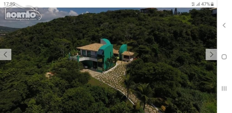 Vista da Enseada do Forno. Grande jardim gramado em aclive suave, portão automático, pátio para estacionamento, 1 vaga coberta, sauna a vapor e ducha. Casa principal com sala de estar, bar, sala de jantar, sala para TV , 1 quarto com armários, lavabo, banheiro social completo, cozinha com ilha, bancada granito, lavanderia com armários e pátio para secagem de roupas. No pavimento superior, sala íntima, escritório, rouparia, 1 banheiro em 2 ambientes, 2 dormitórios com armários, ar split e acesso ao terraço, suíte master, com closet, varanda, banheiro com lavatório duplo e banheira de hidro. Área gourmet com churrasqueira, fogão mineiro, banheiro , sauna e ducha com pressurizador; Anexo 1 para hóspedes com sala cozinha americana, 1 quarto e 1 banheiro. Anexo 2 para hóspedes com pátio privativo, sala com cozinha conjugada, 2 dormitórios com ar, banheiro em 2 ambientes, área de serviço, churrasqueira e ducha. Boiler com 40* litros. Cisterna de 16.00* litros