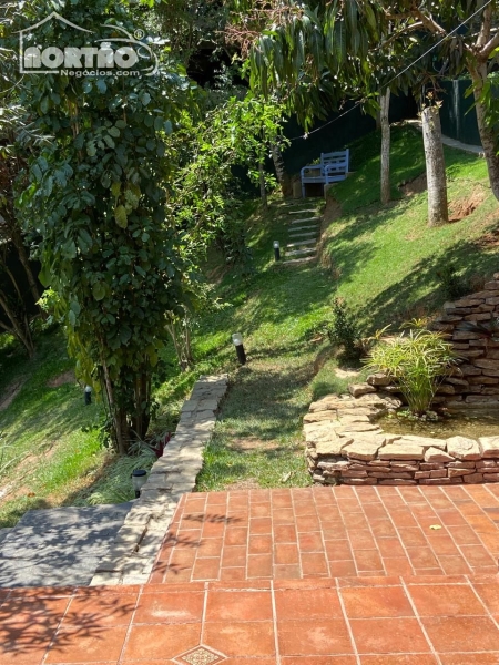 Grande jardim, com piscina, ducha, gazebo com churrasqueira e forno, horta.