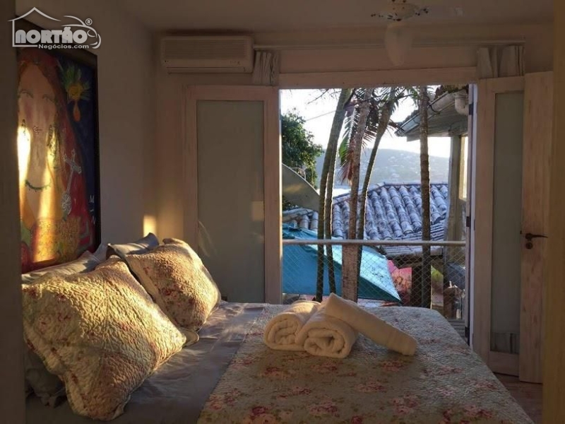 Grande e espetacular residência localizada sobre a Ferradura! Hall de entrada com vista. 4 confortáveis suítes 2 dois dormitórios servidos por 1 banheiro, pisos em tábuas corridas, ar split. Sala de estar, sala de jantar, pátio interno, varanda com vista para o mar. Jardim, piscina, hidromassagem, sauna ducha, espaço gourmet, com forno e churrasqueira. Tudo com muita vista, e frente mar! Maravilhosa!