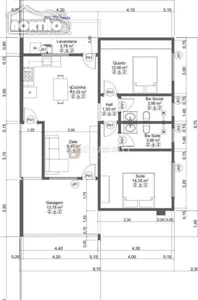 - 87m² de área construída em um terreno espaçoso de 11x30 metros