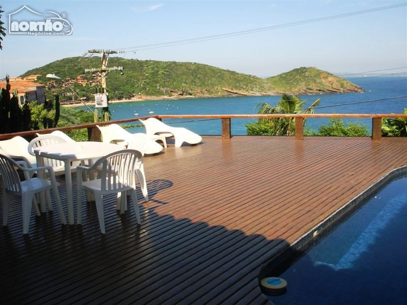 Localização espetacular sobre a Praia de João Fernandinho. Vista espetacular! Grande jardim, acesso pavimentado em paralelepipedos. Graragem coberta para 2 automóveis e vagas para 6 carros.