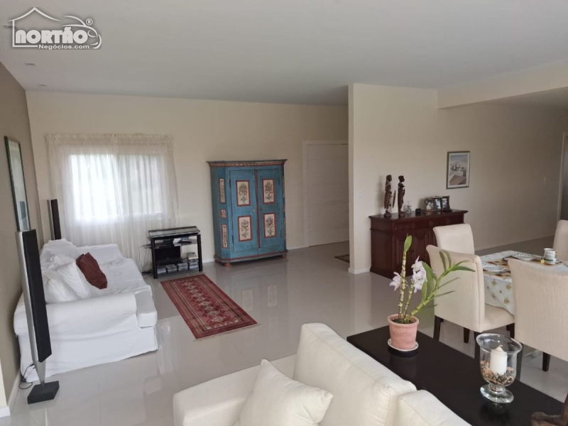 A residência é térrea composta por hall, salão em 3 ambientes, cozinha planejada em conceito aberto, despensa e área de serviço com armários.