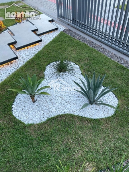 o Imóvel conta com e um belo jardim, escada em balanço, iluminada, em porcelanato e granito na entrada da casa, paisagismo com plantas e pedras naturais na área externa.